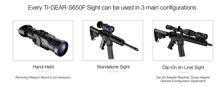 The TI-GEAR-S650F is the professional-grade thermal weapon sight for aiming and engagement on a wide variety of firearms at medium-range distances. Ideal for both small, large-size caliber rifles, machine guns, whether single or repetitive shooting. It is also a great tool for reconnaissance and tactical surveillance.
